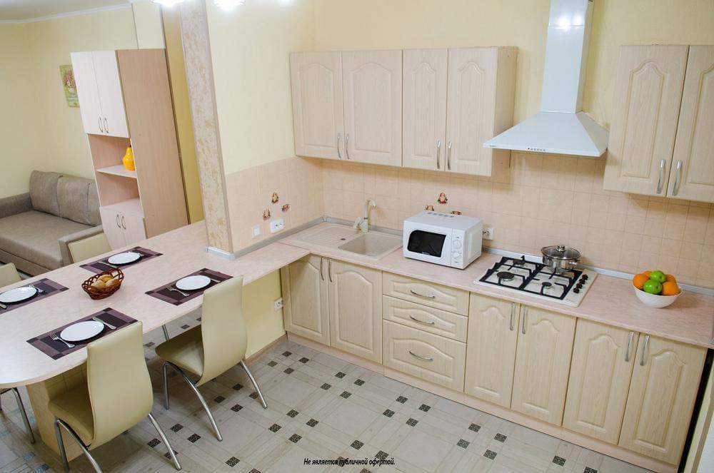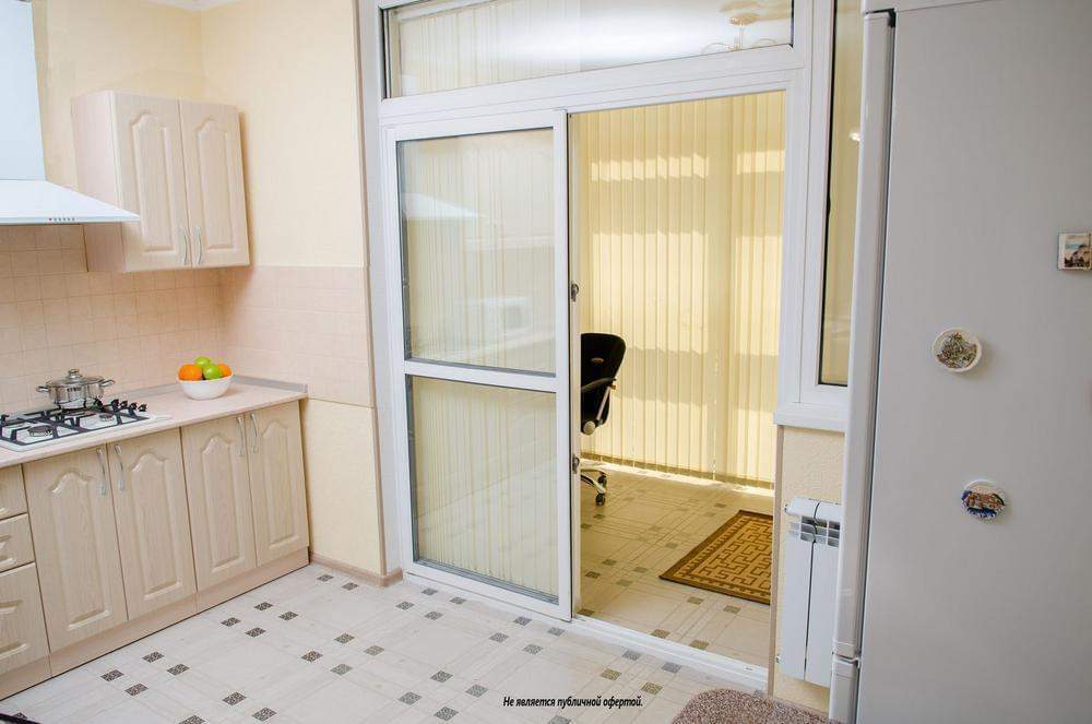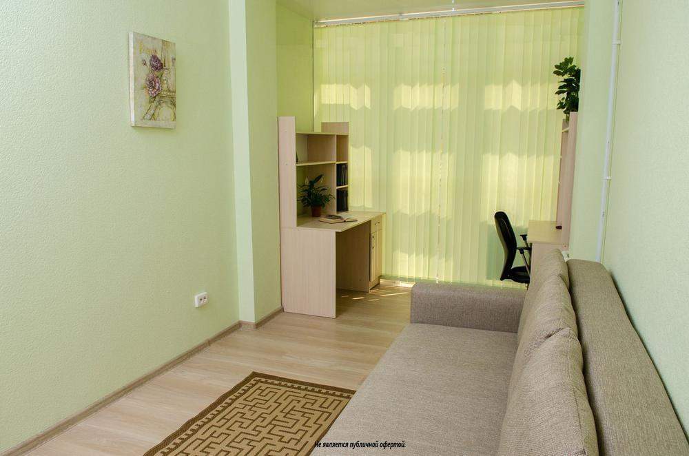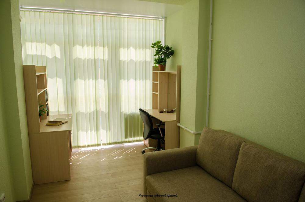 Площадь апартаментов 70 м2 включает в себя прихожую, комнату с кухней-студией, спальню, лоджию и душевую комнату.